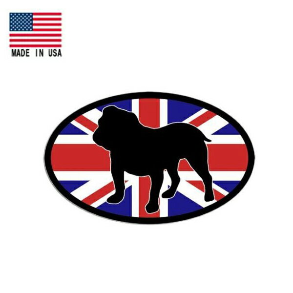 【ステッカー】ユニオンジャック ブルドック シルエット オーバル型 デカール 8cm×12.5cm 【イギリス 英国 雑貨 シール 小物 犬 ドック 動物 アニマル メイドインUSA ブラック レッド ブルー ホワイト】
